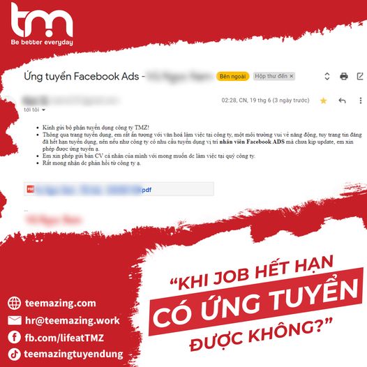 - hay thi thoảng lại có bạn TMZ-er nhắn hỏi HR “job xxx này công ty mình còn tuyển không, để em nhắn bạn em gửi CV”